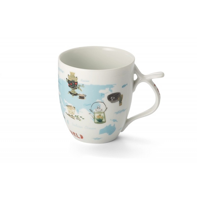 Tee wird weltweit auf unterschiedliche Weise zubereitet und genossen – von der englischen Teatime über den russischen Samowar bis zur japanischen Teezeremonie. Das Motiv zeigt internationale Teesorten wie Blooming Tea, Rotbusch, Chai, Mate und Eistee und steht für die Vielfalt dieses beliebten Getränks. Ein Becher, der besonders Teeliebhaber anspricht.