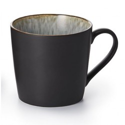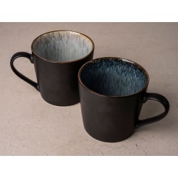 Unser Becher "Jorin" vereint pures, elegantes Design mit einer matten schwarzen Oberfläche. Die kontrastreiche cremefarbene und blaue Reactive Glaze auf der Innenseite sorgt durch individuelle Kolorationsverläufe für jedes Mal ein einzigartiges Aussehen.