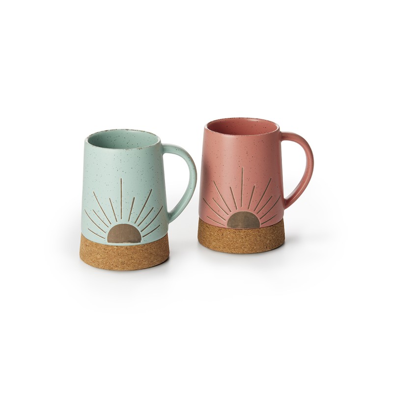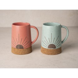 Dieser Becher bringt Sommerstimmung auf den Tisch. Er hat einen fest integrierten Korkboden und besteht aus New Bone China, was ihm ein besonderes Aussehen verleiht. Das fröhliche Design mit Sonnenmotiv und kräftigen Farben erinnert an Urlaub am Meer. Mit 0,35 l Fassungsvermögen eignet sich der Becher für Kaffee oder Tee.